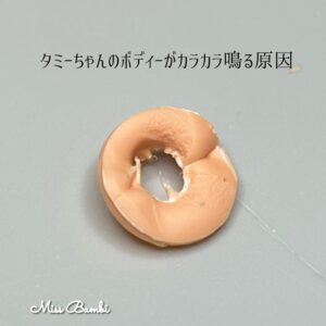 タミーちゃんのカラカラ音は製造時にプラスチックのボディーに首穴を開ける際に切り取った破片でした。