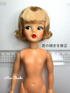 脚、つるぴかです。そして次は首の傾きをお直ししました。