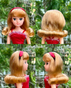 状態の良い子ですのでパーマコースと、オーナー様のご希望でアイプリントは右目に合わせて左目を描きなおしました。
